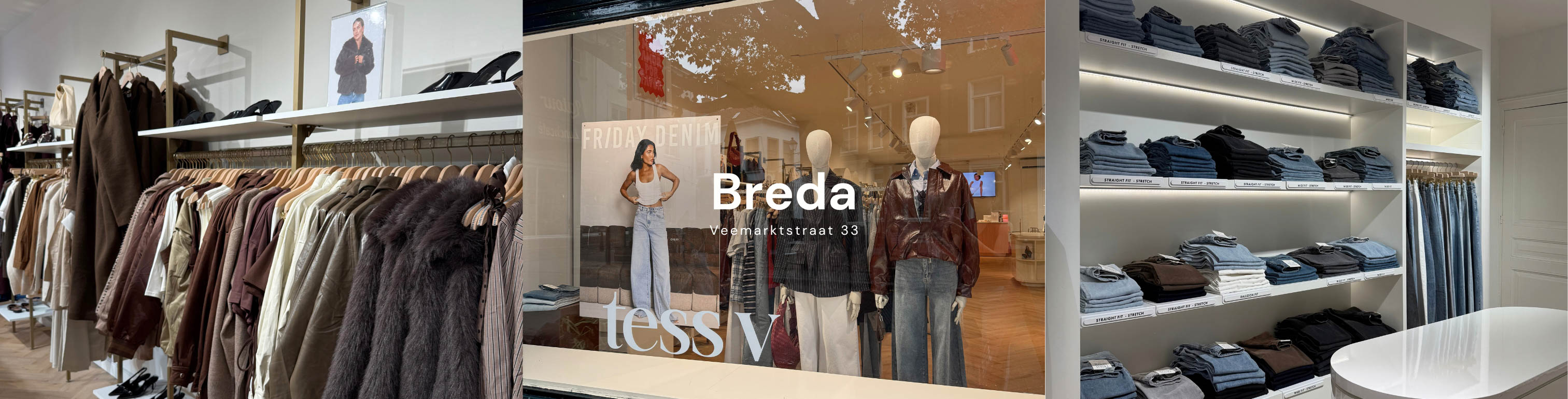 Op 6 april 2024 hebben wij onze derde winkel geopend in het centrum van Breda, gelegen aan de Veemarktstraat. Ook deze tess v winkel is volledig in de stijl van ons merk. De kenmerkende roze accenten zijn door de hele winkel te vinden, om zo een vrouwelijke touch te creëren. Daarnaast is er in de winkel ook een sieraden corner te vinden, te gekke grote spiegels en een heerlijke grote paskamers. Oftewel in onze winkel staat de complete beleving van tess v centraal: vanaf het moment dat je de winkel binnenloopt, tot aan het gevoel asl je jouw nieuwe look draagt. kom je snel langs?